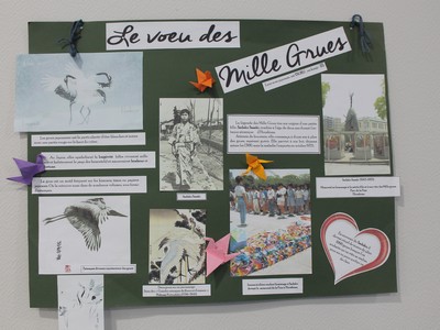 Les élèves, sous l’impulsion de Mme Franc et Mme Cottave-Claudet, auront également mis leur imagination en marche, en réalisant des carnets fauxdori dans lesquels ils ont récolté informations et images, mais également en s’initiant à l’origami et à la calligraphie.